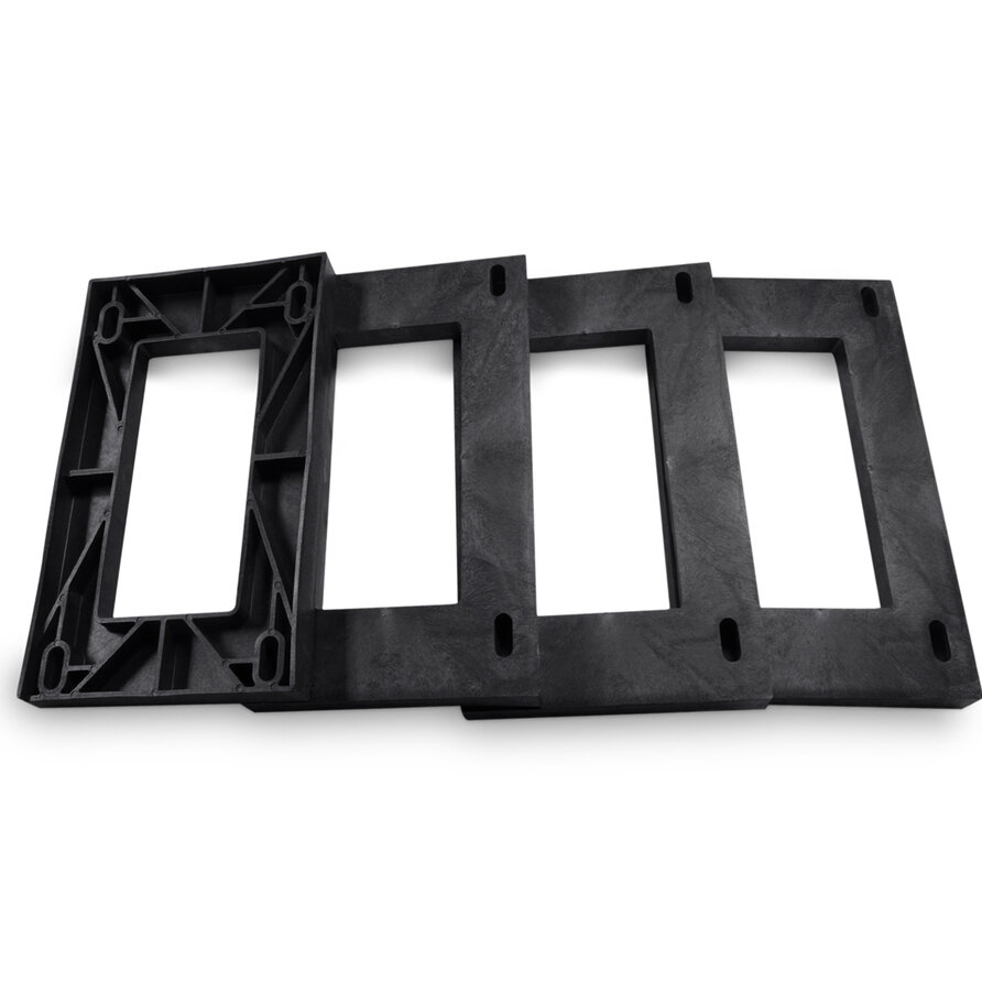 Tafelpoot adapters - afmeting: 29,5x18 cm - 2,25 cm dik - materiaal: plastic - speciaal voor onze 'rondom opgedikte tafelbladen' van 4,5 (2x2,25) cm - geschikt voor (stalen) tafelpoten / onderstellen. Bij "rondom opgedikte tafelbladen" is er sprake van een "optische dikte", waarbij er randen aan de onderkant van het blad zijn geplaatst (volledig rondom). Dit zorgt ervoor dat er wat hoogte verloren gaat bij het gebruik van onze stalen tafelpoten & stalen onderstellen. Om dit hoogteverlies op te vangen bieden wij deze adapters aan. De adapter overbrugt het hoogteverschil tussen de rand van het eiken tafelblad en de werkelijke dikte (verder van de rand af) van het tafelblad. De adapter zorgt als het ware voor een ophoging, waardoor de tafelpoot / tafelonderstel beter aansluit op het (opgedikte) tafelblad en niet "in het tafelblad valt". De adapters worden altijd per vier stuks geleverd.
