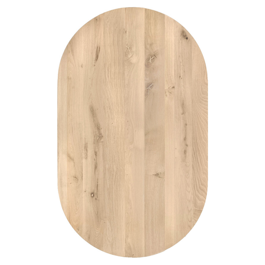 Eiken tafelblad - met halve cirkel uiteinden - 6 cm dik - 2-laags massief - rustiek eikenhout (B/C) - verlijmd, smalle lamel - 60 mm