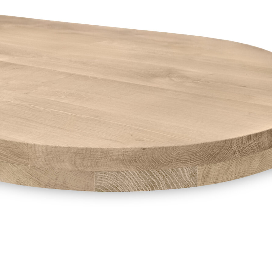 Eiken tafelblad - met halve cirkel uiteinden - op maat - 6 cm dik - 2-laags massief - foutvrij eikenhout (A/B) - verlijmd, smalle lamel - 60 mm