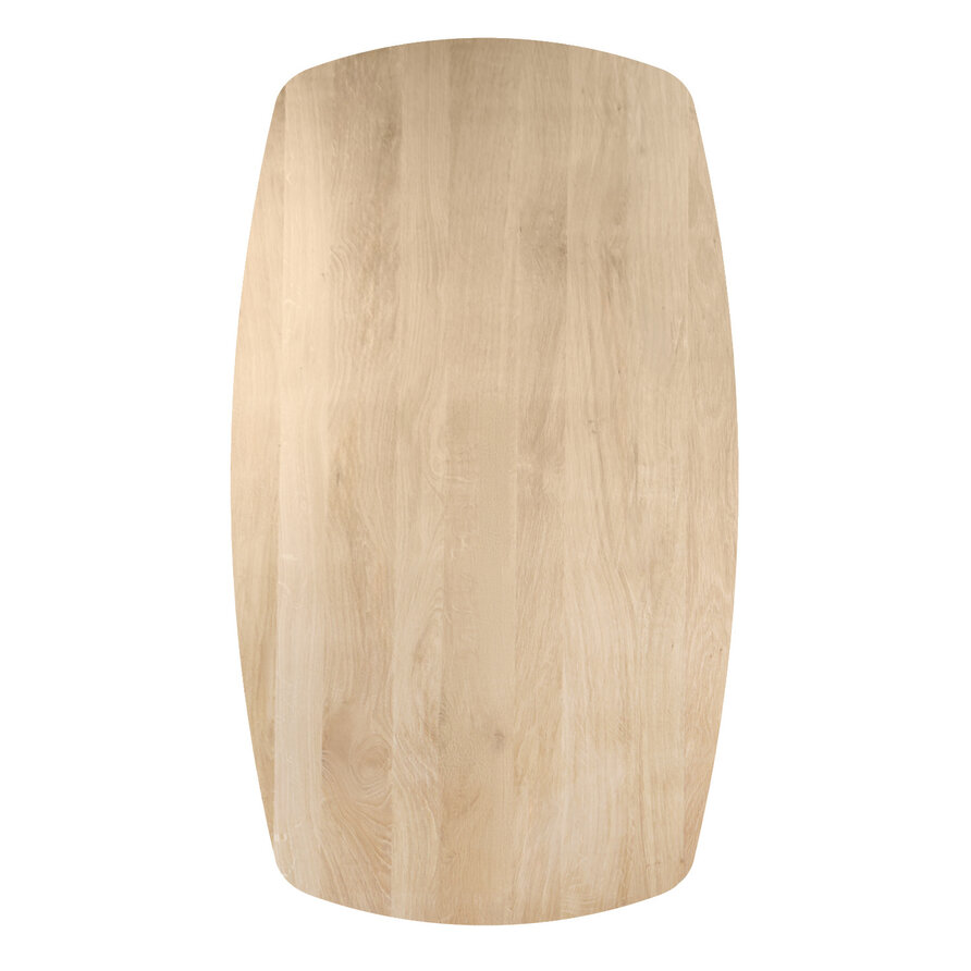 Een Deens ovaal eiken tafelblad - van stijlvol foutvrij eikenhout en 6 cm dik (massief, 2-laags) - in verschillende (vaste) afmetingen. Een prachtig verlijmd tafelblad (smalle lamel) met moderne look, naar wens te configureren! Lees meer