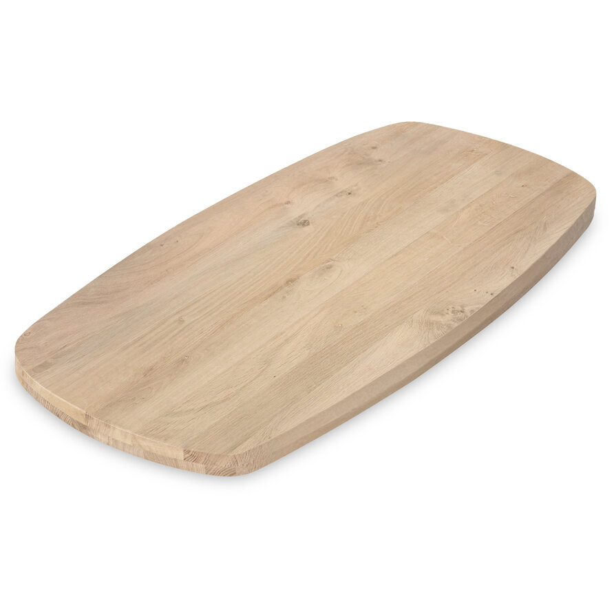 Een Deens ovaal eiken tafelblad - van sfeervol rustiek eikenhout en 6 cm dik (massief, 2-laags) - in verschillende (vaste) afmetingen. Een prachtig verlijmd tafelblad (smalle lamel) met moderne look, naar wens te configureren! Lees meer