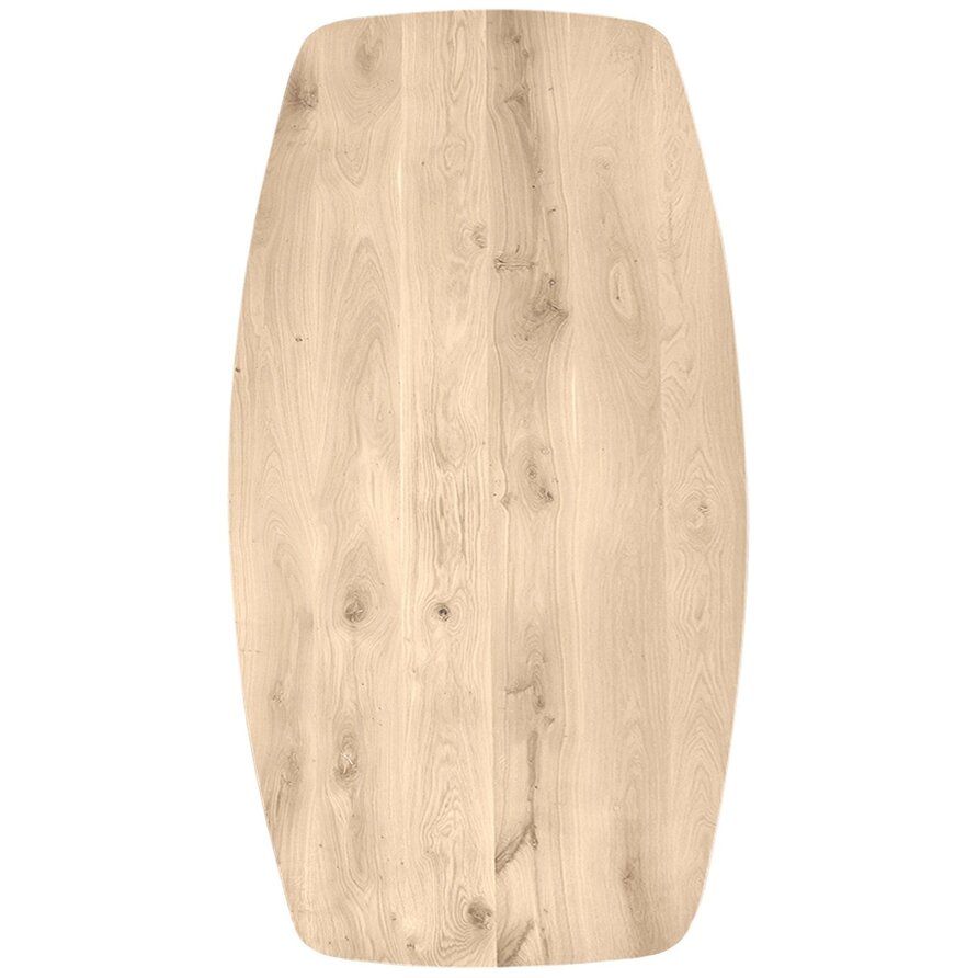 Een Deens ovaal eiken tafelblad met verjongde rand - van sfeervol rustiek eikenhout en 3 cm dik - in verschillende (vaste) afmetingen. Een prachtig verlijmd tafelblad (medium lamel) met moderne look, naar wens te configureren! Lees meer