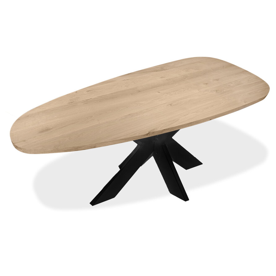Een traan / druppel eiken tafelblad - van sfeervol rustiek eikenhout en 4 cm dik - dat op maat wordt gemaakt. Een prachtig verlijmd "peervormig" tafelblad met chique uitstraling & luxe brede lamel, optioneel met verjongde rand. Configureer naar wens! Lees meer