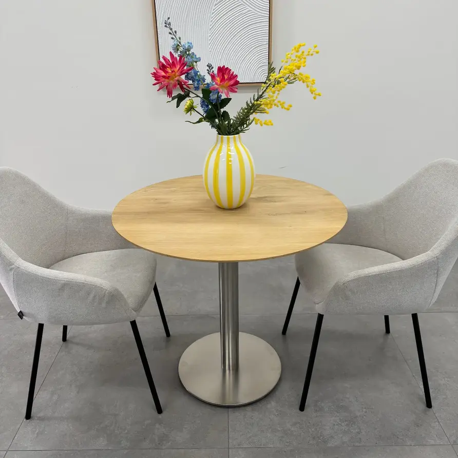 Een prachtige eiken bistrotafel - rond, van sfeervol rustiek eikenhout en 4 cm dik - verkrijgbaar in verschillende (vaste) afmetingen. Optioneel met verjongde rand & met een prachtige collectie bijpassende horeca onderstellen. Configureer naar wens! Lees meer