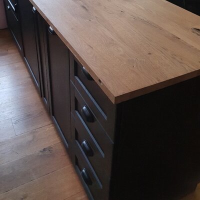 Een eiken blad - van sfeervol rustiek eikenhout en 4 cm dik met uitsparing - dat op maat wordt gemaakt. Een verlijmde "eiken plank" met brede lamellen, ideaal voor een maatwerk interieur (meubel)project. Configureer uw blad compleet naar wens! Lees meer