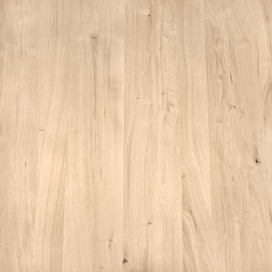 Rustiek eiken (B/C) staat bekend om zijn sfeervolle en warme uitstraling. Het eikenhout is kunstmatig gedroogd (kd) en heeft een vochtpercentage van 8-12%, ideaal voor binnengebruik. De boven- & onderzijde van het eiken blad worden opgebouwd uit doorgaande lamellen in de lengterichting, met een breedte van circa 7 cm, een mooie lamelbreedte. Het middendeel bestaat uit smallere (gevingerlaste) lamellen. Standaard wordt het eiken meubel/timmer paneel onbehandeld, fijn geschuurd (finish) & met scherpe randen geleverd. Daarnaast bieden wij diverse extra opties om uw blad volledig naar wens af te werken.