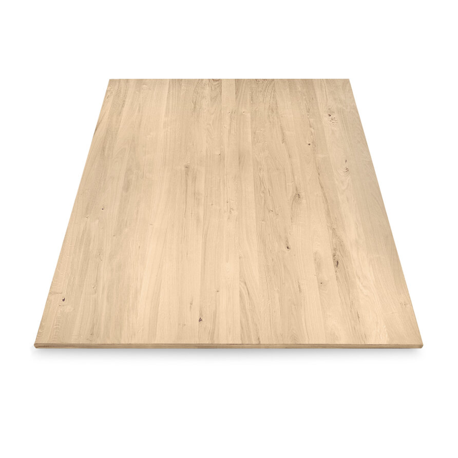 Een eiken blad - van sfeervol rustiek eikenhout en 2 cm dik - dat op maat wordt gemaakt. Een prachtige verlijmde "eiken plank", ideaal voor een maatwerk interieur (meubel)project. Configureer uw eikenhouten blad compleet naar wens! Lees meer
