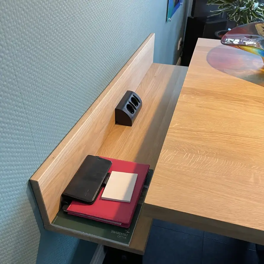 Scherpe randen & hoeken: Onze eiken bladen worden met harde (scherpe) kanten geleverd, houd hier dus rekening mee. Kiest u voor de optie 'inclusief behandeling' dan worden de randen & hoeken wel 'gebroken', oftewel afgewerkt met een vellingkantje (vergelijkbaar met onze tafelbladen).