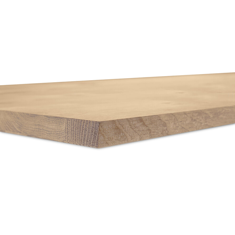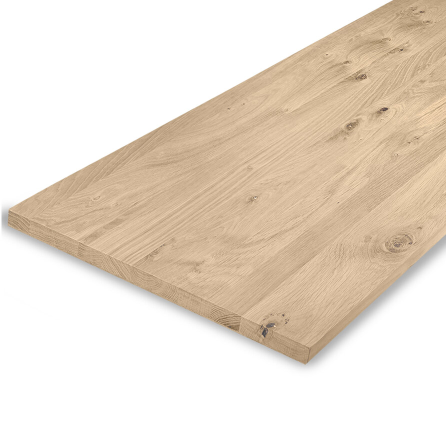 Rustiek eiken (B/C) staat bekend om zijn sfeervolle en warme uitstraling. Het eikenhout is kunstmatig gedroogd (kd) en heeft een vochtpercentage van 8-12%, ideaal voor binnengebruik. Het eiken blad wordt opgebouwd uit doorgaande lamellen in de lengterichting, met een breedte van 4-10 cm, wat een veelvoorkomende lamelbreedte is. Standaard wordt het eiken blad onbehandeld & met scherpe randen geleverd. Daarnaast bieden wij diverse extra opties om uw blad volledig naar wens af te werken.