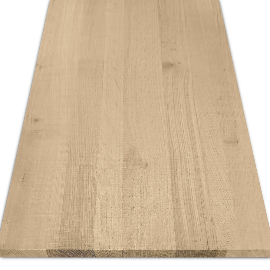 Rustiek eiken (B/C) staat bekend om zijn sfeervolle en warme uitstraling. Het eikenhout is kunstmatig gedroogd (kd) en heeft een vochtpercentage van 8-12%, ideaal voor binnengebruik. Het eiken blad wordt opgebouwd uit doorgaande lamellen in de lengterichting, met een breedte van 4-10 cm, wat een veelvoorkomende lamelbreedte is. Standaard wordt het eiken blad onbehandeld & met scherpe randen geleverd. Daarnaast bieden wij diverse extra opties om uw blad volledig naar wens af te werken.