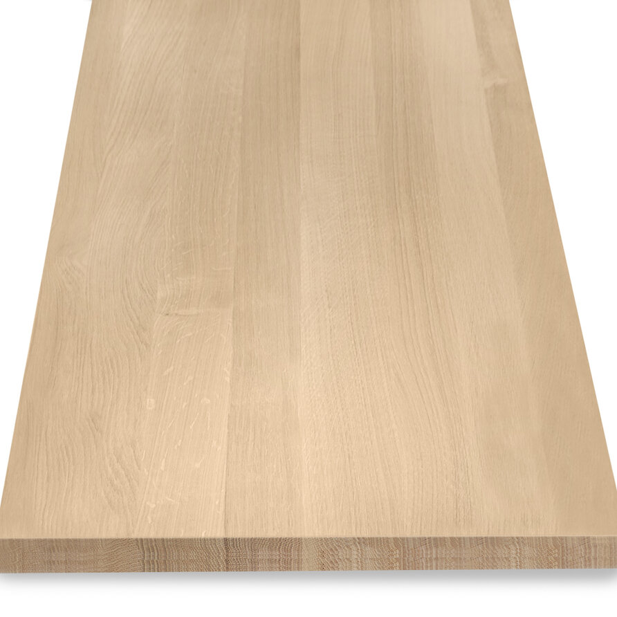 Foutvrij eiken (A/B) staat bekend om zijn sfeervolle en luxe uitstraling. Het eikenhout is kunstmatig gedroogd (kd) en heeft een vochtpercentage van 8-12%, ideaal voor binnengebruik. Het eiken blad wordt opgebouwd uit doorgaande lamellen in de lengterichting, met een breedte van 4-10 cm, wat een veelvoorkomende lamelbreedte is. Standaard wordt het eiken blad onbehandeld & met scherpe randen geleverd. Daarnaast bieden wij diverse extra opties om uw blad volledig naar wens af te werken.