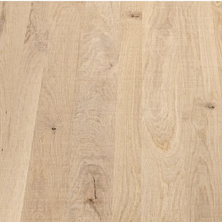 Rustiek eiken (B/C) staat bekend om zijn sfeervolle en warme uitstraling. Het eikenhout is kunstmatig gedroogd (kd) en heeft een vochtpercentage van 8-12%, ideaal voor binnengebruik. Het eiken blad wordt opgebouwd uit doorgaande lamellen in de lengterichting, met een breedte van 4-10 cm, wat een veelvoorkomende lamelbreedte is. Standaard wordt het eiken blad onbehandeld & met scherpe randen geleverd. Daarnaast bieden wij diverse extra opties om uw blad volledig naar wens af te werken.