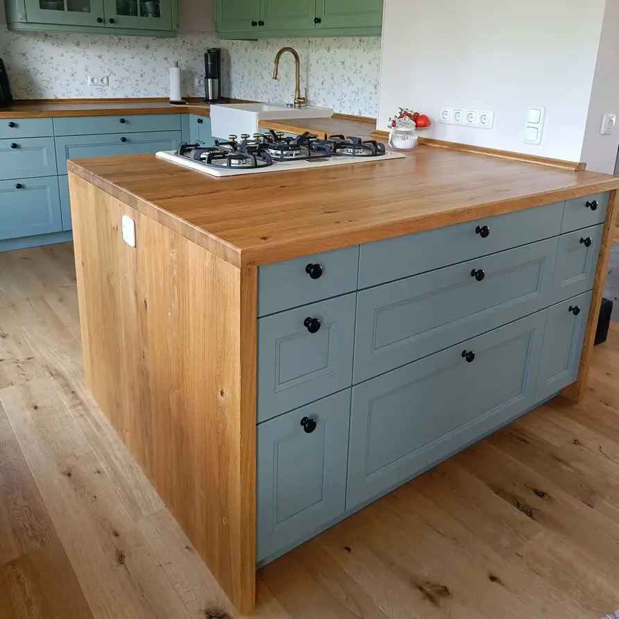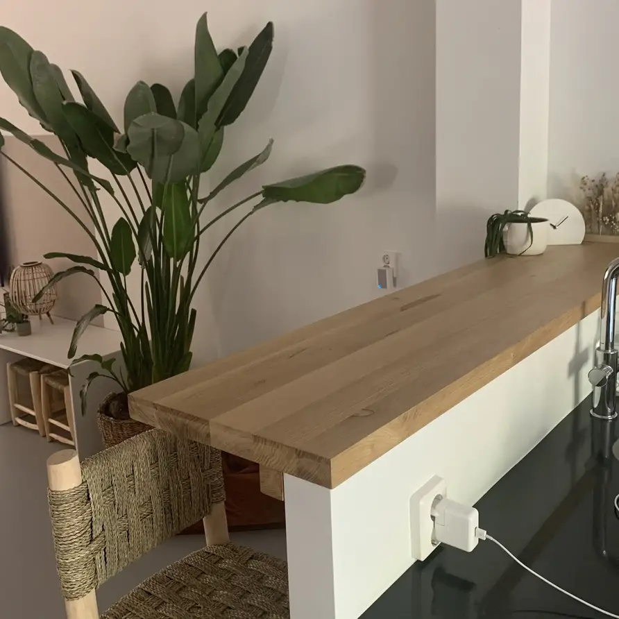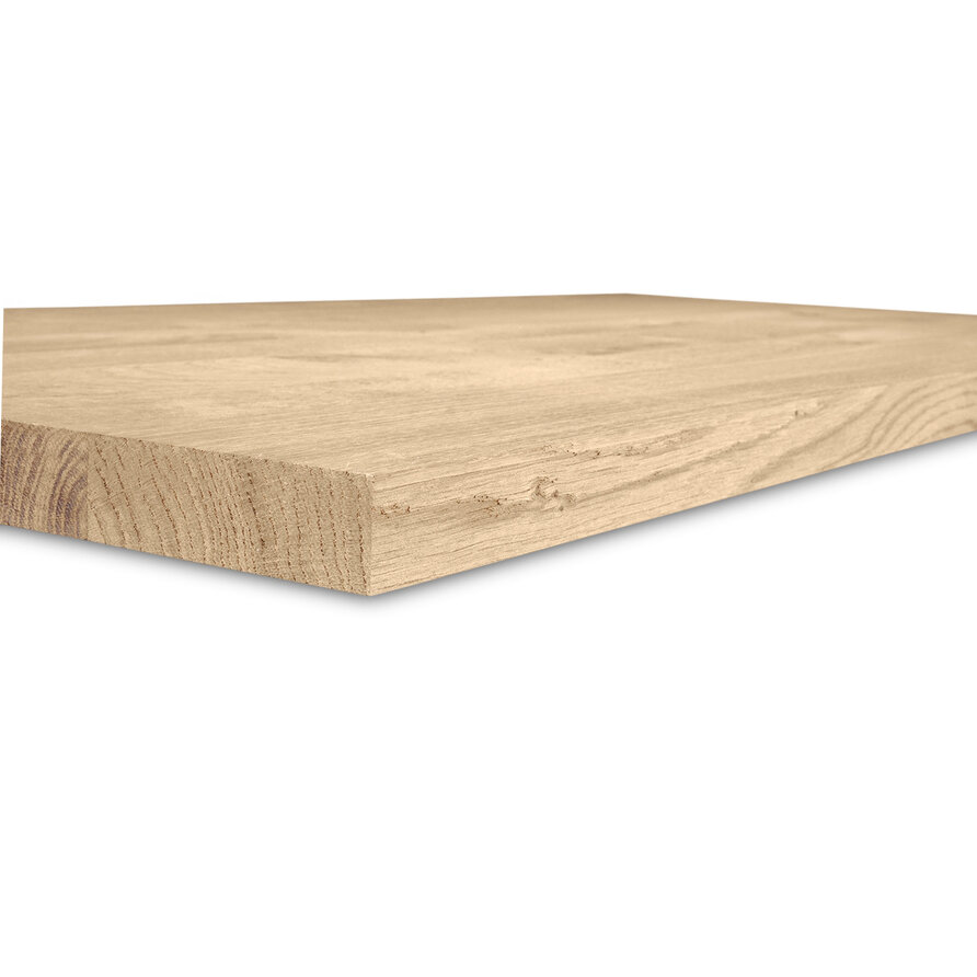Rustiek eiken (B/C) staat bekend om zijn sfeervolle en warme uitstraling. Het eikenhout is kunstmatig gedroogd (kd) en heeft een vochtpercentage van 8-12%, ideaal voor binnengebruik. Het eiken blad wordt opgebouwd uit doorgaande lamellen in de lengterichting, met een breedte van 4-10 cm, wat een veelvoorkomende lamelbreedte is. Standaard wordt het eiken blad onbehandeld, fijn geschuurd (finish) & met scherpe randen geleverd. Daarnaast bieden wij diverse extra opties om uw blad volledig naar wens af te werken.