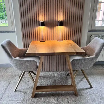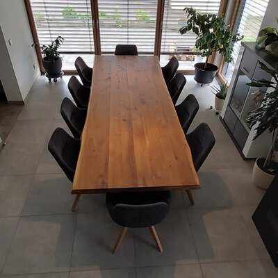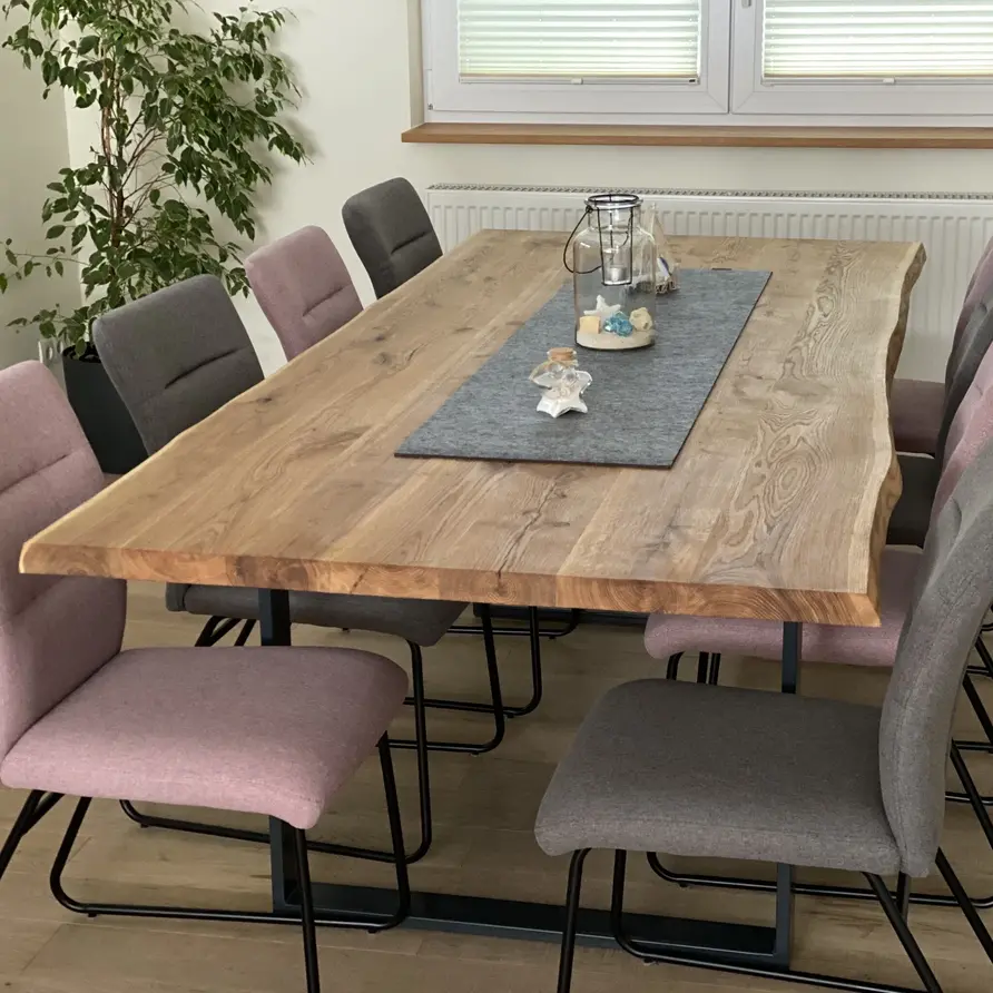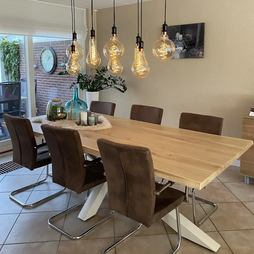 Rustiek eiken (B/C) staat bekend om zijn sfeervolle en warme uitstraling. Het eikenhout is kunstmatig gedroogd (kd) en heeft een vochtpercentage van 8-12%, ideaal voor binnengebruik. Het eiken blad wordt opgebouwd uit doorgaande lamellen in de lengterichting, met een breedte van 10-25 cm, oftewel speciale brede XL lamellen! Standaard wordt het eiken tafelblad onbehandeld, fijn geschuurd (finish) & met scherpe randen geleverd. Als u kiest voor een behandeling, worden de randen automatisch afgerond. Daarnaast bieden wij diverse extra opties om uw tafelblad volledig naar wens af te werken.