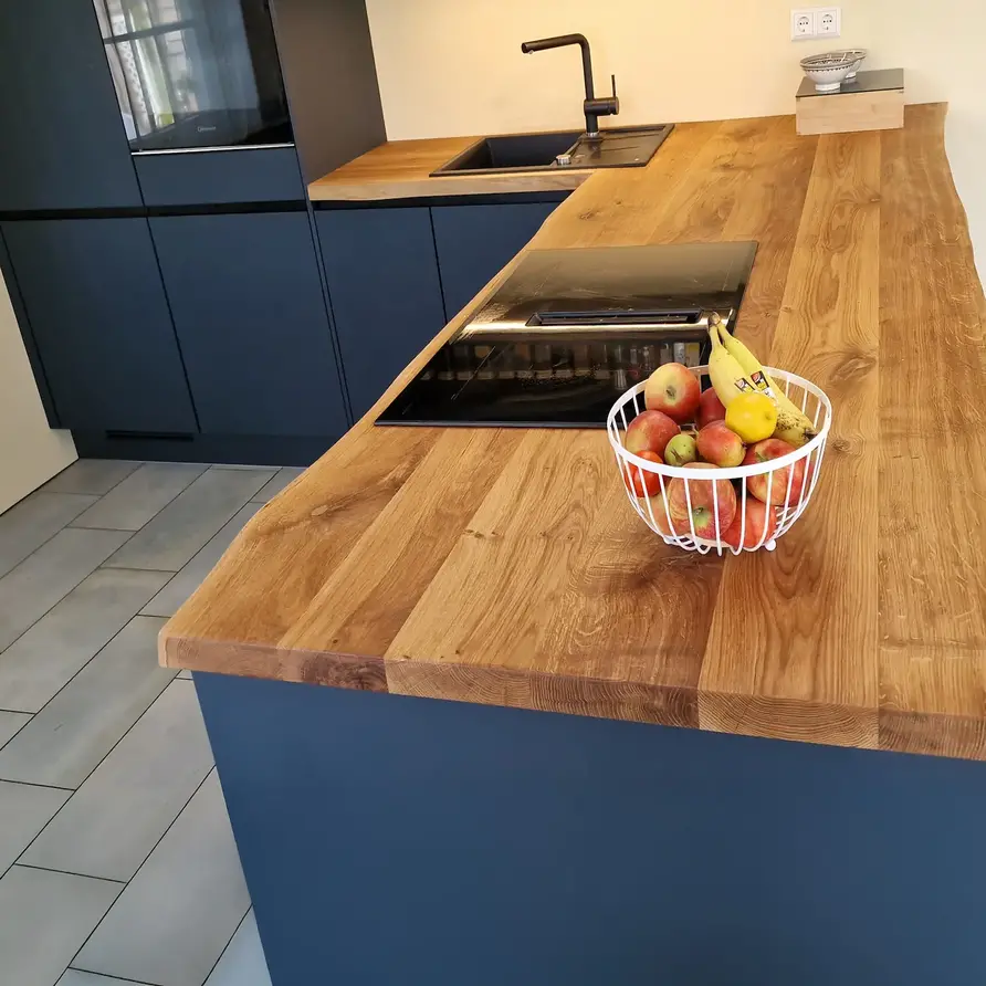 Eiken tafelblad - boomstam rand - 4 cm dik - rustiek eikenhout (B/C) - verlijmd, XL lamel (10-25 cm) - 40 mm