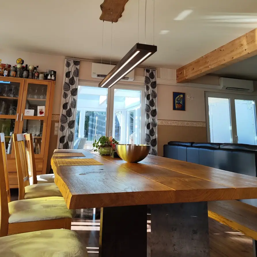 Rustiek eiken (B/C) staat bekend om zijn sfeervolle en warme uitstraling. Het eikenhout is kunstmatig gedroogd (kd) en heeft een vochtpercentage van 8-12%, ideaal voor binnengebruik. Het eiken blad wordt opgebouwd uit 3 XXL doorgaande lamellen in de lengterichting. Hierbij worden er V-groeven tussen de lamellen aangebracht, voor een extra stijlvol accent. Standaard wordt het eiken tafelblad onbehandeld, geborsteld & met scherpe randen geleverd. Als u kiest voor een behandeling, worden de randen automatisch afgerond. Daarnaast bieden wij diverse extra opties om uw tafelblad volledig naar wens af te werken.