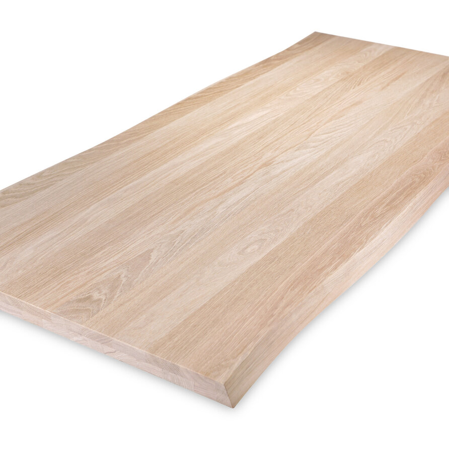 Foutvrij eiken (A/B) staat bekend om zijn sfeervolle en luxe uitstraling. Het eikenhout is kunstmatig gedroogd (kd) en heeft een vochtpercentage van 8-12%, ideaal voor binnengebruik. Het eiken tafelblad wordt opgebouwd uit doorgaande lamellen in de lengterichting, met een breedte van 4-10 cm, wat een veelvoorkomende lamelbreedte is. Standaard wordt het eiken tafelblad onbehandeld, fijn geschuurd (finish) & met afgeronde randen (2 mm radius) geleverd. Daarnaast bieden wij diverse extra opties om uw tafelblad volledig naar wens af te werken.