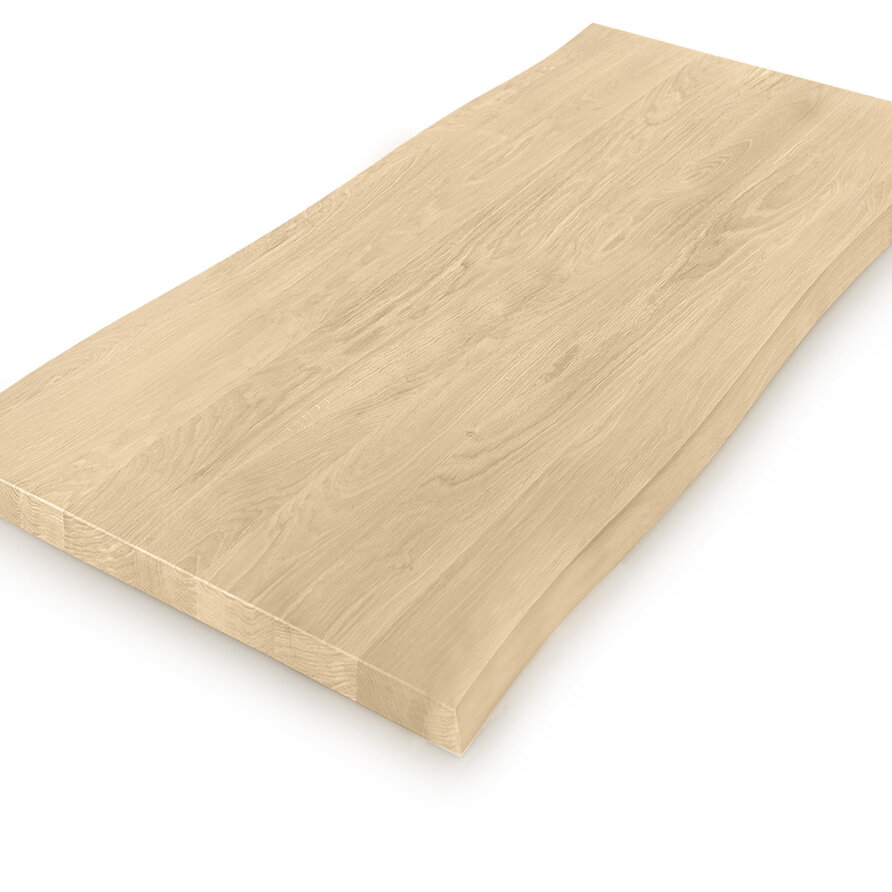Eiken tafelblad - boomstam rand (CNC) - 4 cm dik - foutvrij eikenhout (A/B) - verlijmd, brede lamel (9-12 cm) - 40 mm