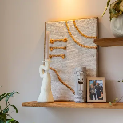 LET OP: Door de natuurlijke vorm van de CNC boomstamrand kan de diepte van de wandplank (zoals beschreven bij de productspecificaties) - op bepaalde punten - tot maximaal 2,5 cm smaller uitvallen.
