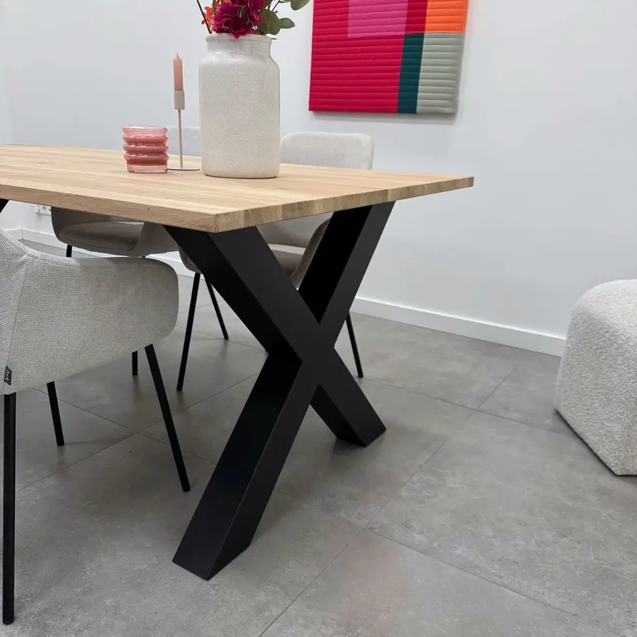 Op basis van uw afmetingen tonen wij een prachtige collectie bijpassende tafelpoten & onderstellen, voor een unieke, complete eiken eettafel. Let op: Dit is een zorgvuldig samengestelde collectie, maar zeker niet ons volledige assortiment. Onder de categorie "tafelpoten" vindt u alle mogelijkheden.