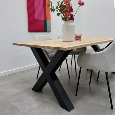 Op basis van uw afmetingen tonen wij een prachtige collectie bijpassende tafelpoten & onderstellen, voor een unieke, complete eiken eettafel. Let op: Dit is een zorgvuldig samengestelde collectie, maar zeker niet ons volledige assortiment. Onder de categorie "tafelpoten" vindt u alle mogelijkheden.
