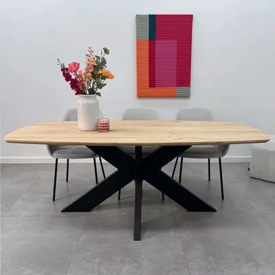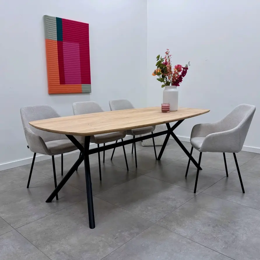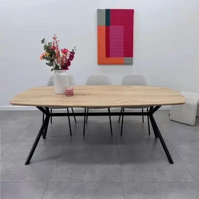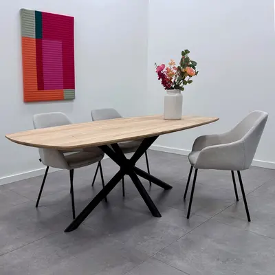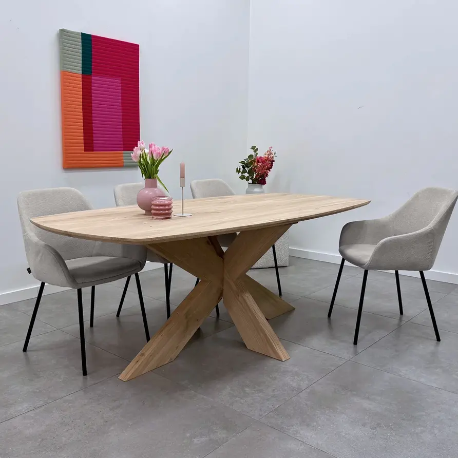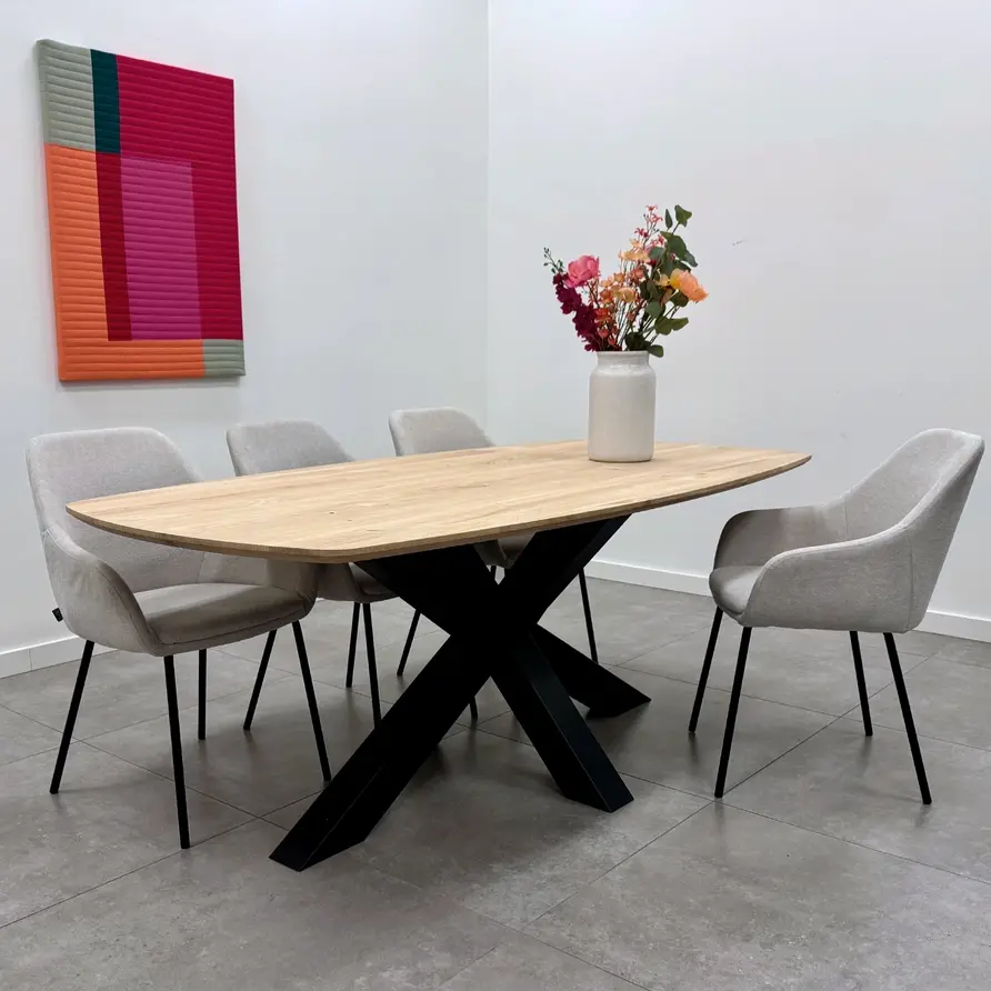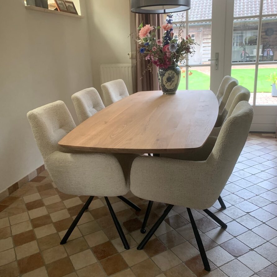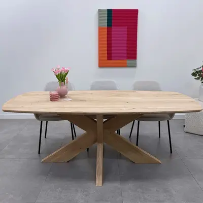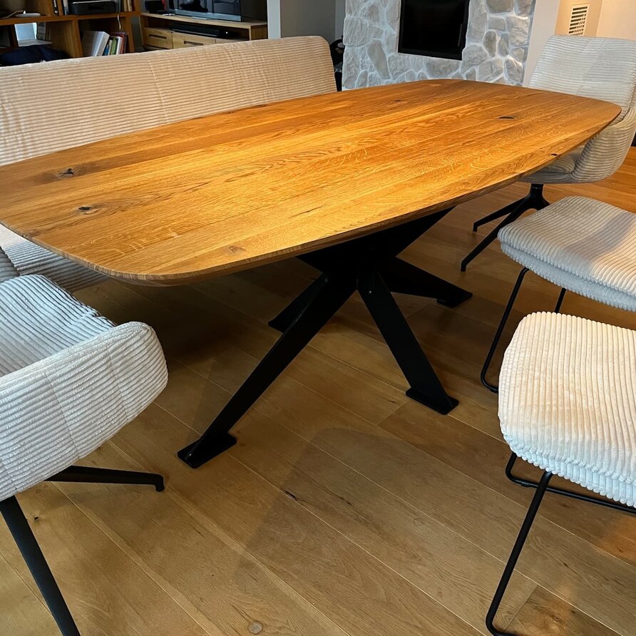 Een moderne eiken eettafel - Deens ovaal, van sfeervol rustiek eikenhout en 2,7 cm dik - verkrijgbaar in verschillende (vaste) afmetingen. Optioneel met verjongde rand & met een prachtige collectie bijpassende onderstellen. Configureer naar wens! Lees meer