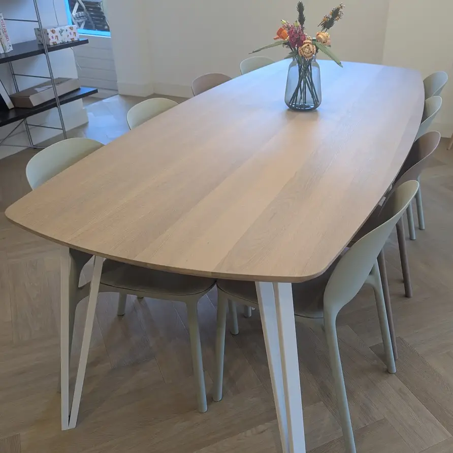 Een moderne eiken eettafel - Deens ovaal, van stijlvol foutvrij eikenhout en 2,7 cm dik - verkrijgbaar in verschillende (vaste) afmetingen. Optioneel met verjongde rand & met een prachtige collectie bijpassende onderstellen. Configureer naar wens! Lees meer