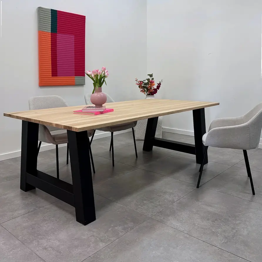 Op basis van uw afmetingen tonen wij een prachtige collectie bijpassende tafelpoten & onderstellen, voor een unieke, complete eiken eettafel. Let op: Dit is een zorgvuldig samengestelde collectie, maar zeker niet ons volledige assortiment. Onder de categorie "tafelpoten" vindt u alle mogelijkheden.