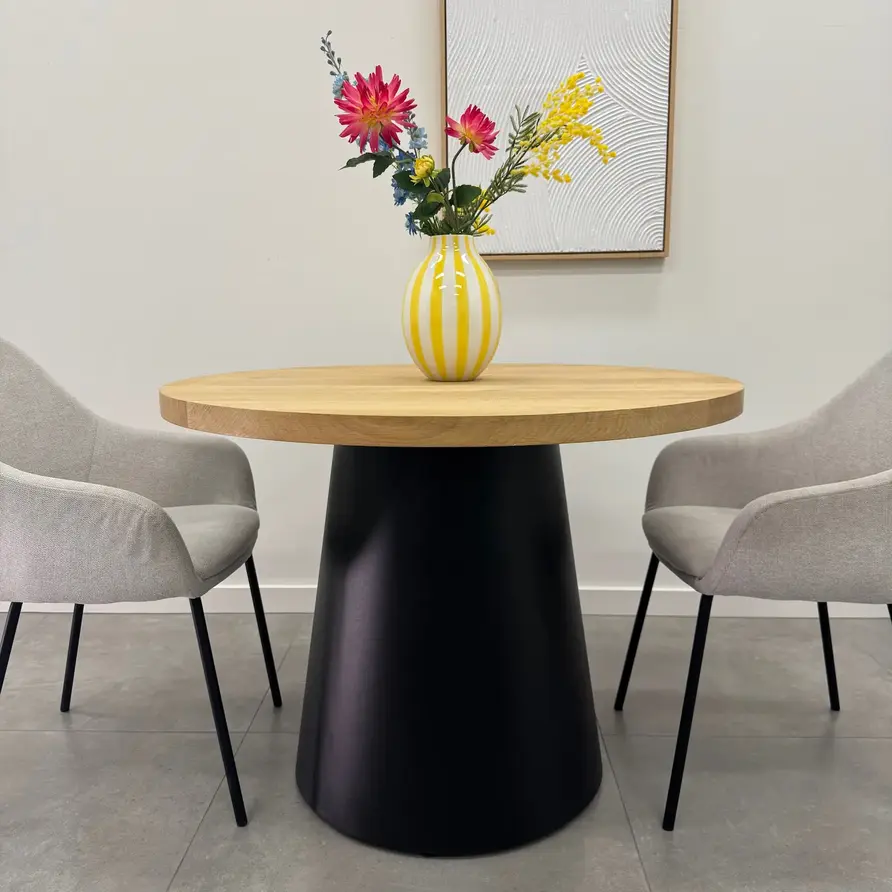 Op basis van uw afmetingen tonen wij een prachtige collectie bijpassende (centrale) tafelonderstellen, voor een unieke, complete ronde eiken eettafel.