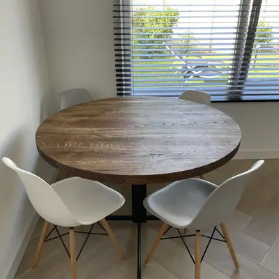 Een prachtige eiken eettafel - rond, van sfeervol rustiek eikenhout en 4 cm dik - verkrijgbaar in verschillende (vaste) afmetingen. Optioneel met verjongde rand & met een prachtige collectie bijpassende onderstellen. Configureer naar wens! Lees meer