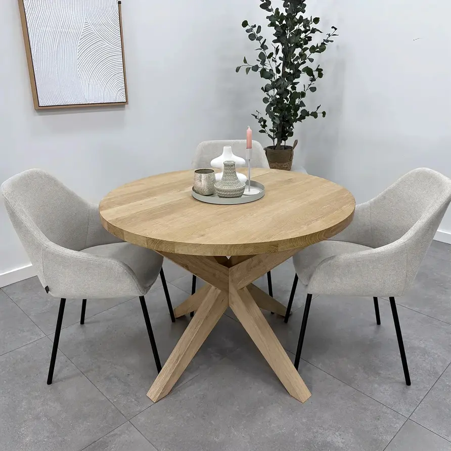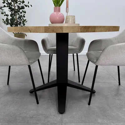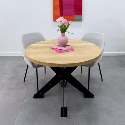 Op basis van uw afmetingen tonen wij een prachtige collectie bijpassende (centrale) tafelonderstellen, voor een unieke, complete ronde eiken eettafel.