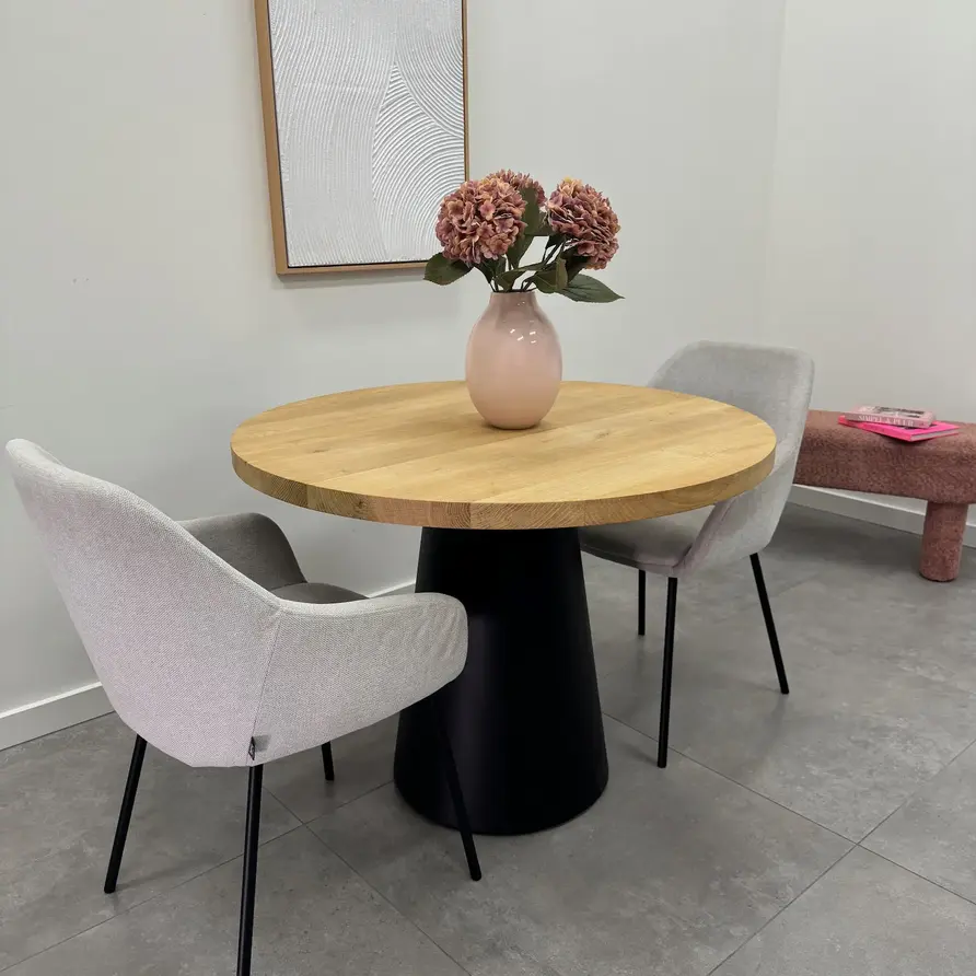 Op basis van uw afmetingen tonen wij een prachtige collectie bijpassende (centrale) tafelonderstellen, voor een unieke, complete ronde eikenhouten eettafel.