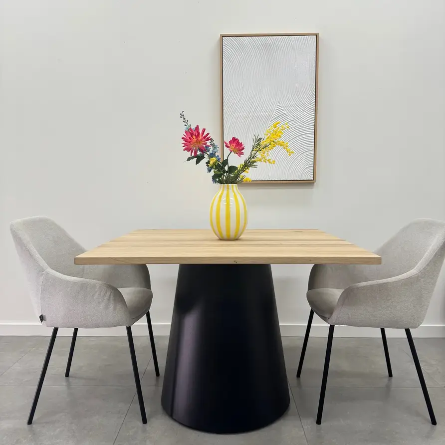 Op basis van uw afmetingen tonen wij een prachtige collectie bijpassende (centrale) tafelonderstellen, voor een unieke, complete vierkantige eiken eettafel.