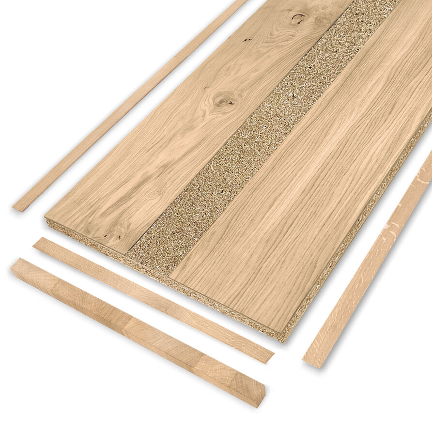 Een eiken fineer blad - van 5,2 cm dik, voorzien van stijlvol foutvrij eiken dikfineer - dat op maat wordt gemaakt. Een stabiel en licht hoogwaardig eikenfineer (meubel)paneel, ideaal voor een maatwerk interieur project, Configureer compleet naar wens! Lees meer