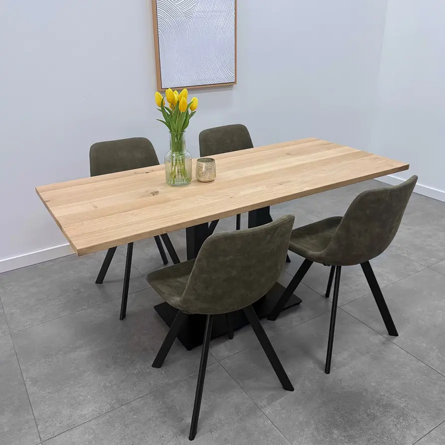 Rustiek eiken (B/C) staat bekend om zijn sfeervolle en warme uitstraling. Het eikenhout is kunstmatig gedroogd (kd) en heeft een vochtpercentage van 8-12%, ideaal voor binnengebruik. Het eiken tafelblad wordt opgebouwd uit doorgaande lamellen in de lengterichting, met een breedte van 9-12 cm, oftewel speciale brede lamellen! Standaard wordt het blad onbehandeld, fijn geschuurd (finish) & met afgeronde randen (2 mm radius) geleverd. Daarnaast bieden wij diverse extra opties om uw tafelblad volledig naar wens af te werken.
