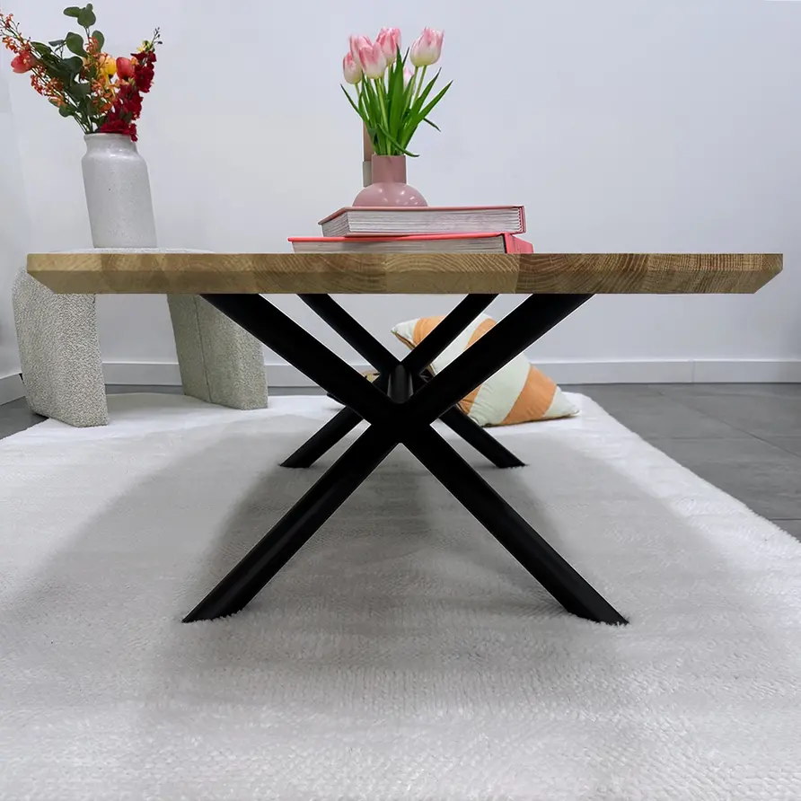 Op basis van uw afmetingen tonen wij een prachtige collectie bijpassende salontafel onderstellen, voor een unieke, complete eikenhouten salontafel. Let op: een tafel Deens ovaal loopt aan de uiteinden smaller toe. Daarom adviseren wij een (centraal) onderstel. Toch liever losse salontafel poten? Dat kan - wij bieden een unieke collectie - maar houd dan circa 15-20 cm extra marge aan bij de minimale breedte van de tafelpoot.