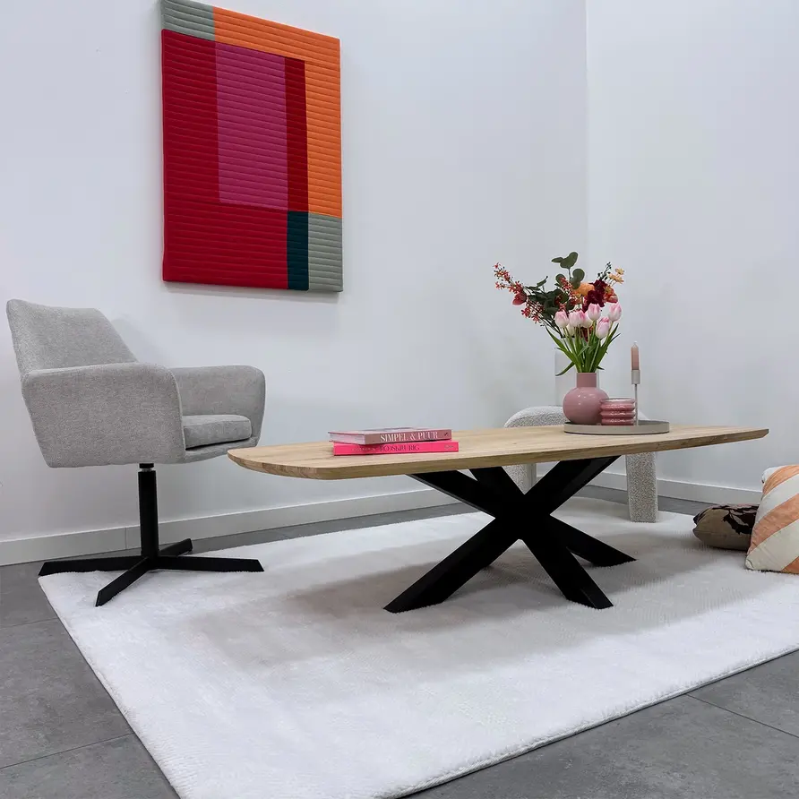 Een moderne eiken salontafel - Deens ovaal, van stijlvol foutvrij eikenhout en 4 cm dik - verkrijgbaar in verschillende (vaste) afmetingen. Optioneel met verjongde rand & met een prachtige collectie bijpassende onderstellen. Configureer naar wens! Lees meer