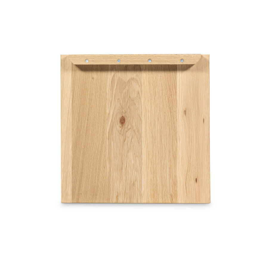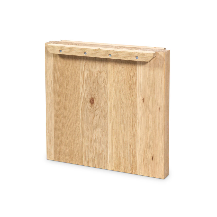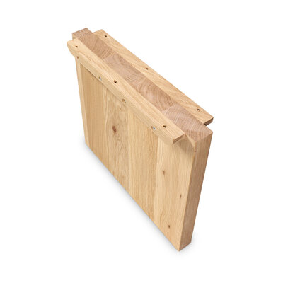 Het eikenhout is kunstmatig gedroogd (kd) en heeft een vochtpercentage van 8-12%, ideaal voor binnengebruik. De eiken tafelpoot wordt opgebouwd uit doorgaande lamellen in de "hoogterichting", vergelijkbaar met een tafelblad. Standaard wordt de tafelpoot onbehandeld geleverd. Deze tafelpoten hebben aan beide zijden een stevige eiken montagelat (circa 3x3 cm) met voorgeboorde gaten, wat zorgt voor een eenvoudige bevestiging op de door u gewenste positie. De latjes zijn aan beide zijden circa 2,5 cm smaller dan de poot zelf en afgeschuind, zodat ze minder opvallen. De onderzijde van de tafelpoot is vlak, daarom adviseren we het gebruik van meubelvilt of plakvilt voor extra bescherming.