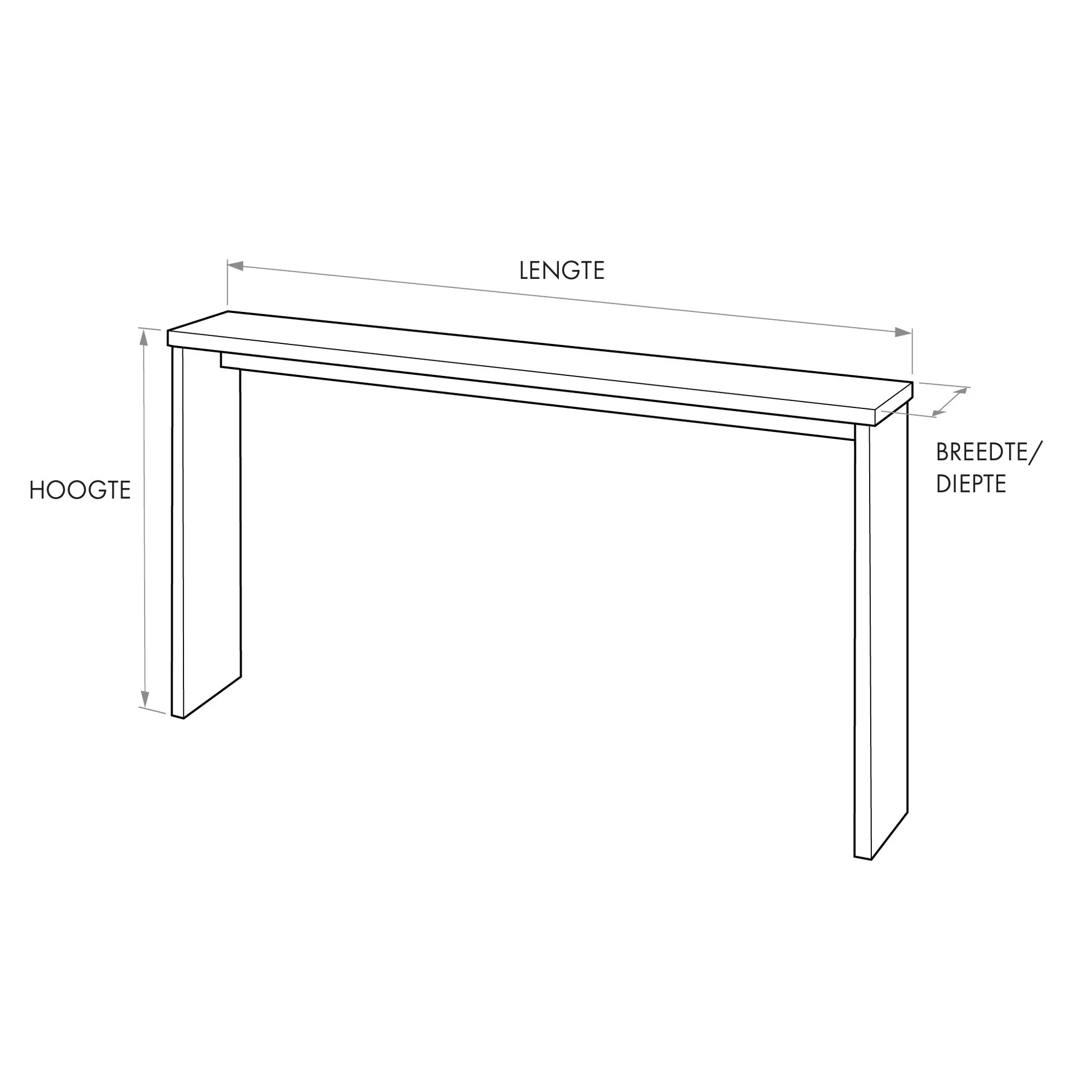 Poten informatie: De poten zijn standaard 1 cm smaller dan de door u in de configurator ingevoerde breedte van het bovenblad. De poten worden aan beide zijden circa 5 mm naar binnen geplaatst. Kiest u voor een sidetable met een lengte van meer dan 200 cm, dan wordt voor extra stabiliteit een extra (derde) tafelpoot in het midden van de tafel toegevoegd.