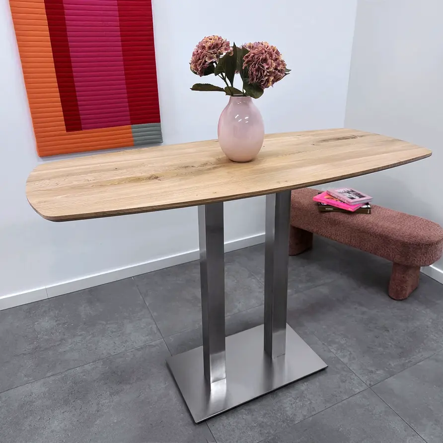 Op basis van uw afmetingen tonen wij een prachtige collectie bijpassende statafel & bartafel onderstellen & poten, voor een complete & hoge eikenhouten horecatafel.