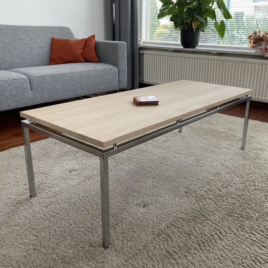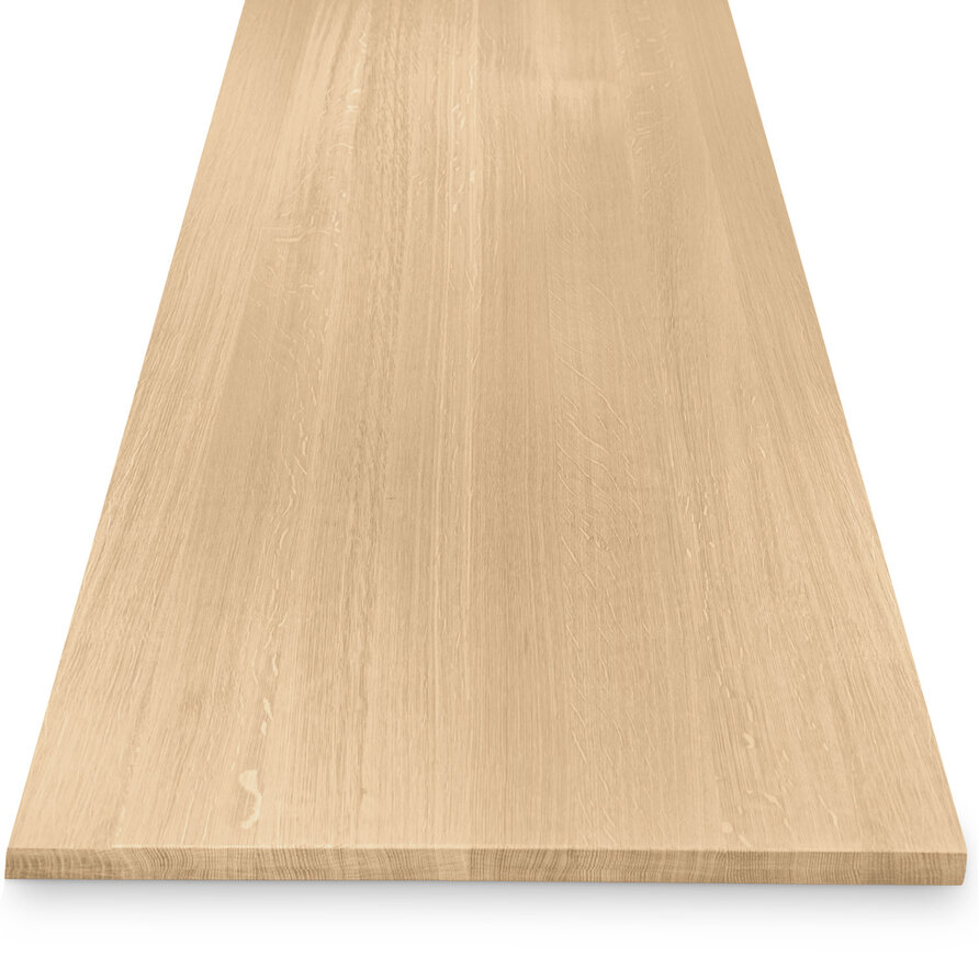 Foutvrij eiken (A/B) staat bekend om zijn sfeervolle en luxe uitstraling. Het eikenhout is kunstmatig gedroogd (kd) en heeft een vochtpercentage van 8-12%, ideaal voor binnengebruik. Het eiken blad wordt opgebouwd uit doorgaande lamellen in de lengterichting, met een breedte van 4-10 cm, wat een veelvoorkomende lamelbreedte is. Standaard wordt het eiken tafelblad onbehandeld, fijn geschuurd (finish) & met afgeronde randen (2 mm radius) geleverd. Daarnaast bieden wij diverse extra opties om uw tafelblad volledig naar wens af te werken.