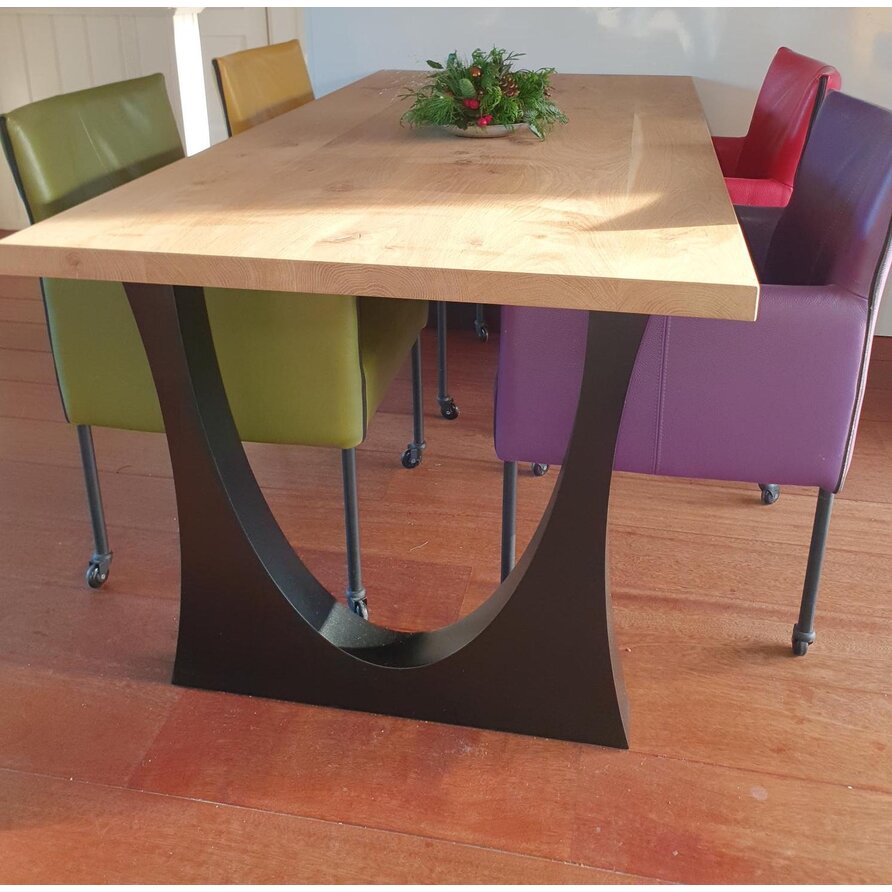 Rustiek eiken (B/C) staat bekend om zijn sfeervolle en warme uitstraling. Het eikenhout is kunstmatig gedroogd (kd) en heeft een vochtpercentage van 8-12%, ideaal voor binnengebruik. Het eiken blad wordt opgebouwd uit doorgaande lamellen in de lengterichting, met een breedte van +10 cm, oftewel speciale brede lamellen! Standaard wordt het eiken tafelblad onbehandeld, fijn geschuurd (finish) & met scherpe randen geleverd. Als u kiest voor een behandeling, worden de randen automatisch afgerond. Daarnaast bieden wij diverse extra opties om uw tafelblad volledig naar wens af te werken.