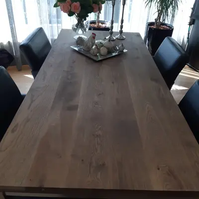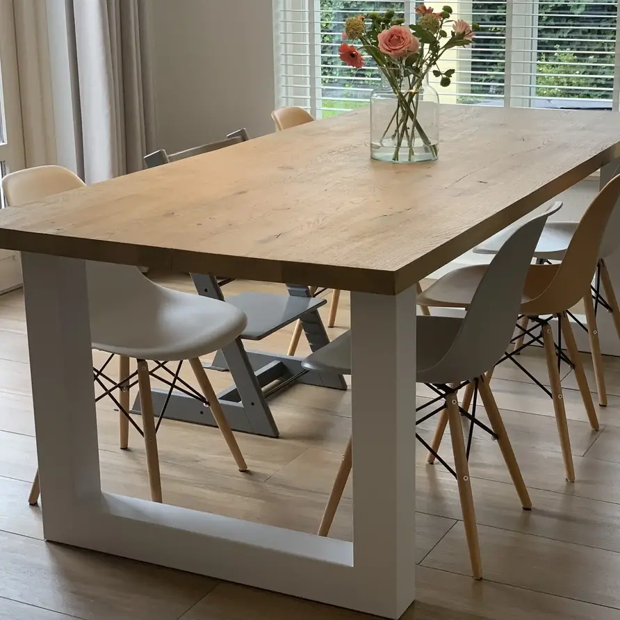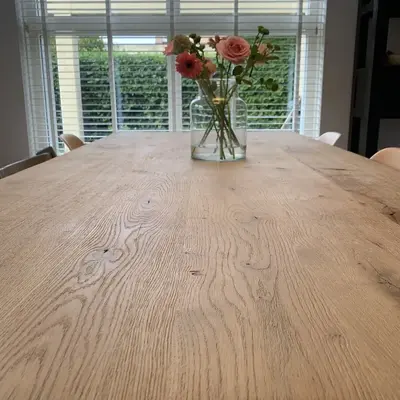 Een eiken tafelblad - van sfeervol rustiek eikenhout en 4 cm dik - in verschillende (vaste) afmetingen. Een prachtig verlijmd tafelblad met brede lamellen. Configureer uw eikenhouten tafelblad compleet naar wens! Lees meer