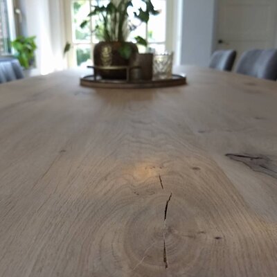 Eiken tafelblad - 4 cm dik (massief) - rustiek eikenhout (B/C) - brede lamel (9-12 cm) - ambachtelijk verlijmde tafel - kunstmatig gedroogd (KD) 8-12%. Dit prachtige eiken tafelblad van 40 mm dik wordt ambachtelijk gemaakt, met veel zorg & aandacht voor detail, en is verkrijgbaar in diverse vaste maten. Het rustieke eikenhout heeft een B-kwaliteit zichtzijde met noesten en scheuren. Dit zorgt voor een levendig en natuurlijk uiterlijk. Ook bent u bij dit eiken tafelblad verzekerd van brede lamellen, voor een (extra!) mooie eiken tafel met een luxe accent.