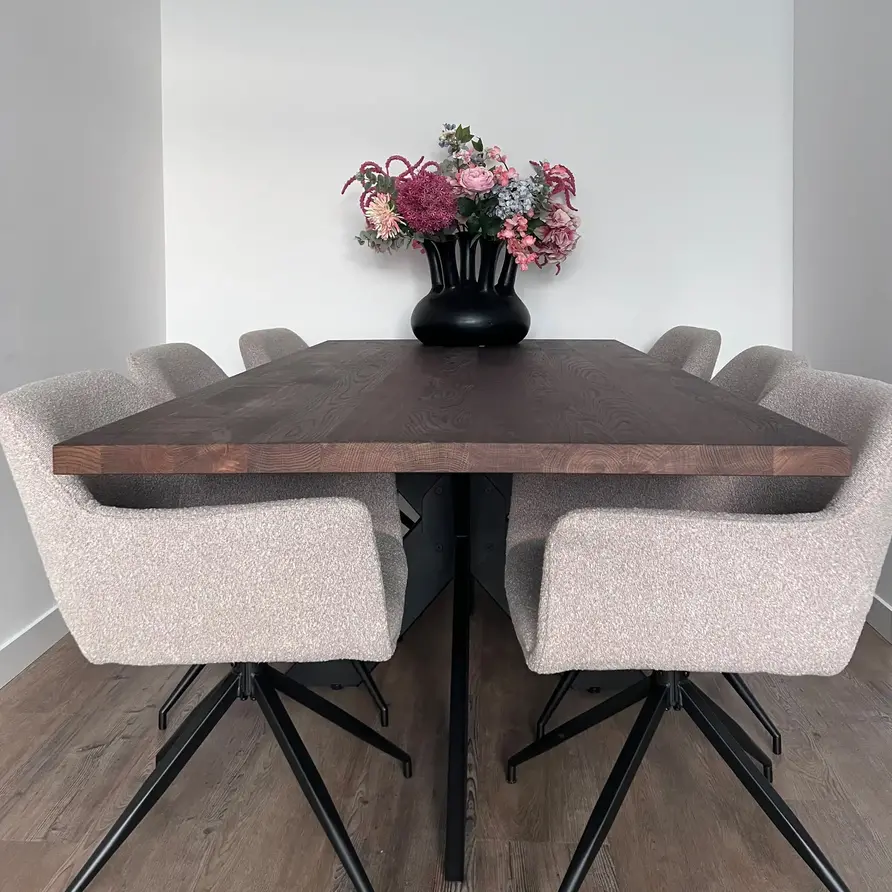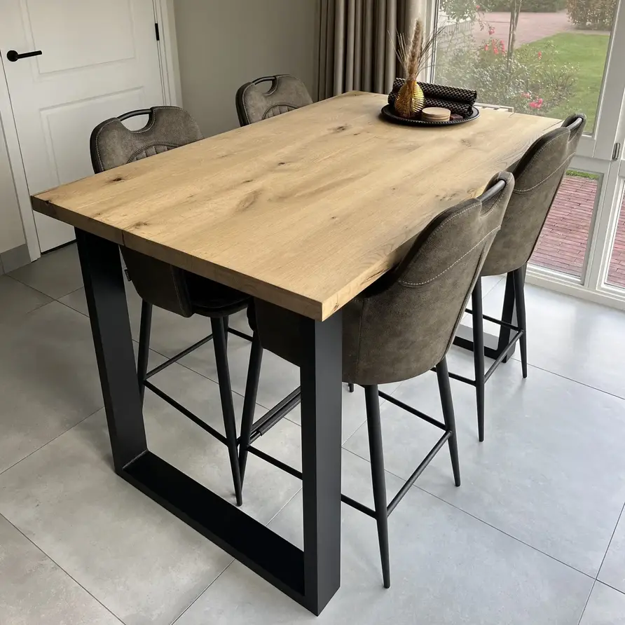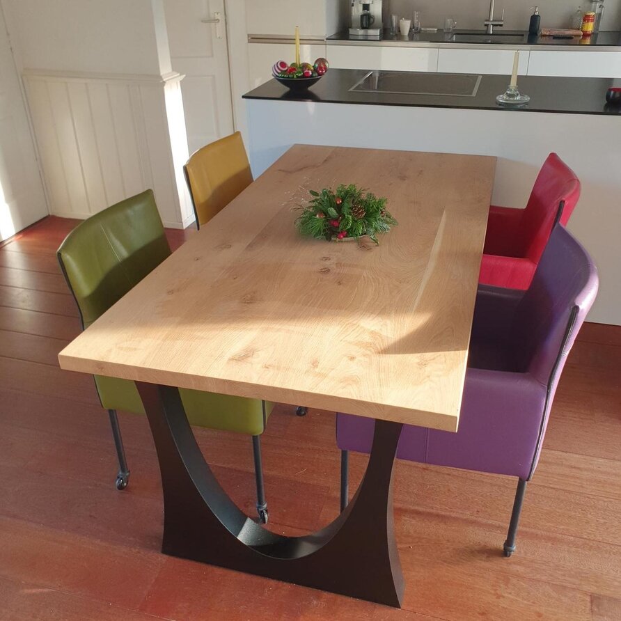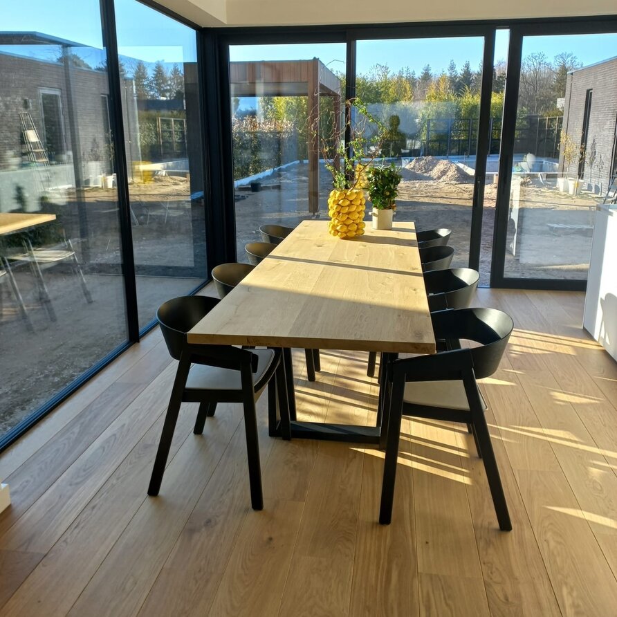 Rustiek eiken (B/C) staat bekend om zijn sfeervolle en warme uitstraling. Het eikenhout is kunstmatig gedroogd (kd) en heeft een vochtpercentage van 8-12%, ideaal voor binnengebruik. Het eiken blad wordt opgebouwd uit doorgaande lamellen in de lengterichting, met een breedte van 9-12 cm, oftewel speciale brede lamellen! Standaard wordt het eiken tafelblad onbehandeld, fijn geschuurd (finish) & met afgeronde randen (2 mm radius) geleverd. Daarnaast bieden wij diverse extra opties om uw tafelblad volledig naar wens af te werken.