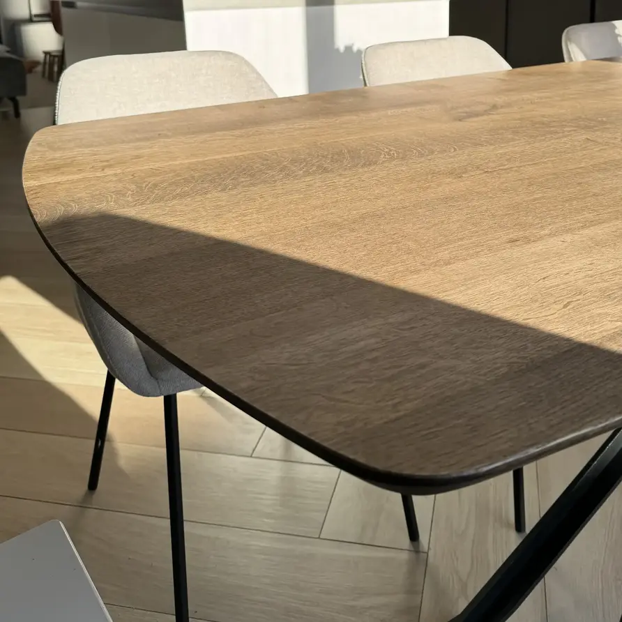 Rustiek eiken (B/C) staat bekend om zijn sfeervolle en warme uitstraling. Het eikenhout is kunstmatig gedroogd (kd) en heeft een vochtpercentage van 8-12%, ideaal voor binnengebruik. Het eiken tafelblad wordt opgebouwd uit doorgaande lamellen in de lengterichting, met een breedte van 6-12 cm, een mooie lamelbreedte is. Standaard wordt het eiken tafelblad onbehandeld, fijn geschuurd (finish) & met scherpe randen geleverd. Als u kiest voor een behandeling, worden de randen automatisch afgerond. Daarnaast bieden wij diverse extra opties om uw tafelblad volledig naar wens af te werken.
