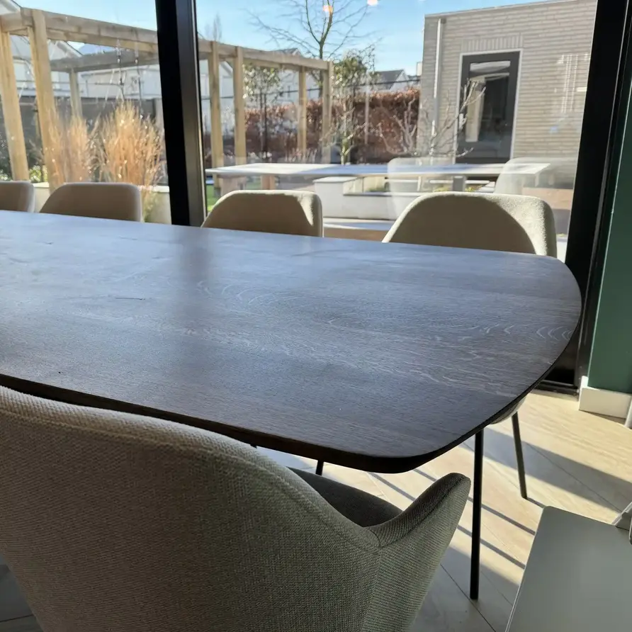 Let op: De breedte (zoals beschreven bij de productspecificaties) is het breedste punt, aan de uiteinden is het tafelblad circa 10 cm smaller. Houd hier rekening mee indien u kiest voor een tafelpoten set. Het tafelblad wordt aan de onderzijde standaard voorzien van 2 staalprofielen & (werkings)groeven/sleuven om de kans op werking (vervorming / kromtrekking) te verkleinen, voor een stabiel tafelblad.