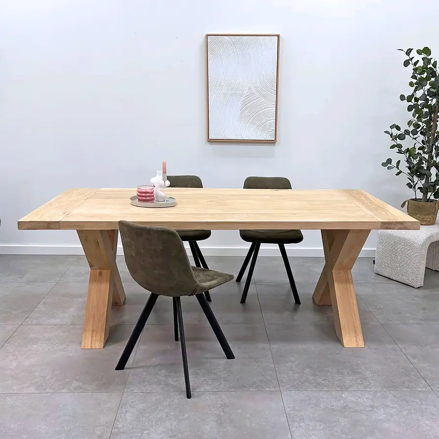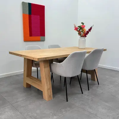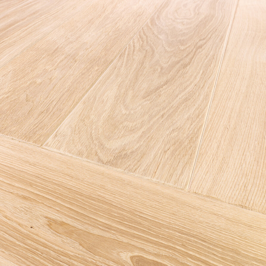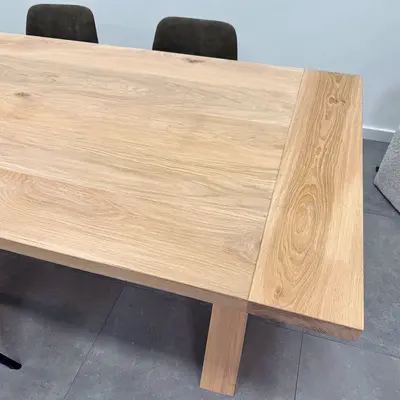 Rustiek eiken (B/C) staat bekend om zijn sfeervolle en warme uitstraling. Het eikenhout is kunstmatig gedroogd (kd) en heeft een vochtpercentage van 8-12%, ideaal voor binnengebruik. Het eiken blad wordt opgebouwd uit doorgaande lamellen in de lengterichting, met een breedte van circa 20 cm, oftewel speciale brede XL lamellen! Hierbij worden er V-groeven tussen de lamellen aangebracht, voor een extra stijlvol accent. Standaard wordt het eiken tafelblad onbehandeld, geborsteld & met scherpe randen geleverd. Als u kiest voor een behandeling, worden de randen automatisch afgerond. Daarnaast bieden wij diverse extra opties om uw tafelblad volledig naar wens af te werken.
