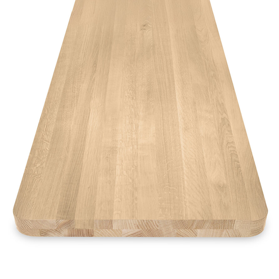 Eiken tafelblad - ronde hoeken - 6 cm dik - 2-laags massief - foutvrij eikenhout (A/B) - verlijmd, smalle lamel - 60 mm
