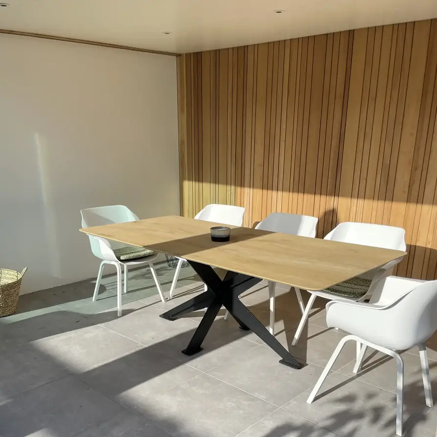 Rustiek eiken (B/C) staat bekend om zijn sfeervolle en warme uitstraling. Het eikenhout is kunstmatig gedroogd (kd) en heeft een vochtpercentage van 8-12%, ideaal voor binnengebruik. Het eiken blad wordt opgebouwd uit doorgaande lamellen in de lengterichting, met een breedte van 9-12 cm, oftewel speciale brede lamellen! Standaard wordt het eiken tafelblad onbehandeld, fijn geschuurd (finish) & met afgeronde randen (2 mm radius) geleverd. Daarnaast bieden wij diverse extra opties om uw tafelblad volledig naar wens af te werken.